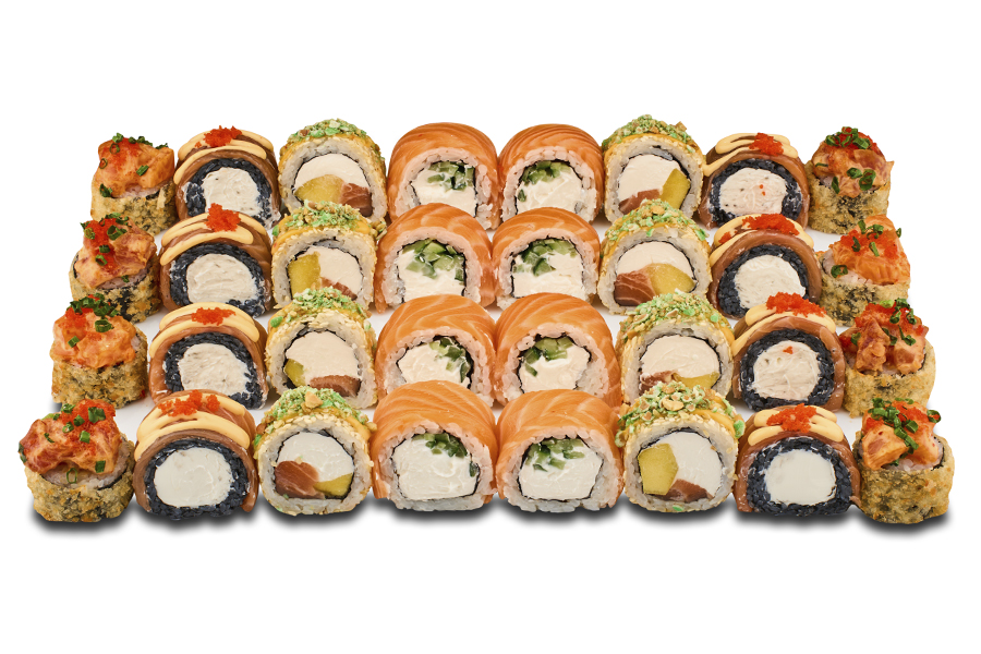 Роли: Філадельфія блек спешл 8 шт., Кріспі мікс 8 шт., Тропік 8 шт., Філадельфія спешл 8 шт.